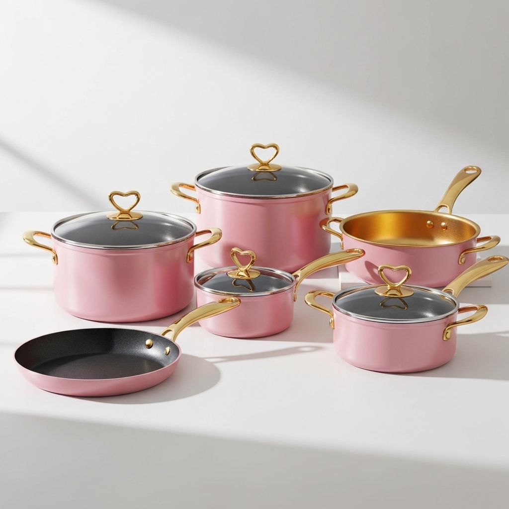 "The attention to detail is incredible - from the heart-shaped knobs to the gold handles. These pots and pans perform just as well as they look. Worth every penny!"